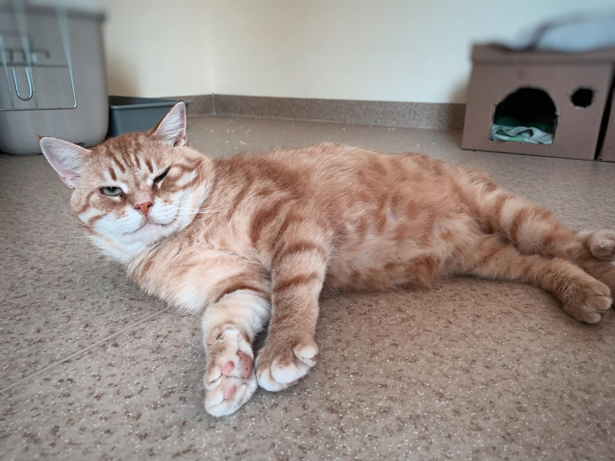 Teiste kassidega ühiselt koos saab Villule teda pisut üle kavaldades juba ka silitusi jagada, sest hellust armastab ta väga.