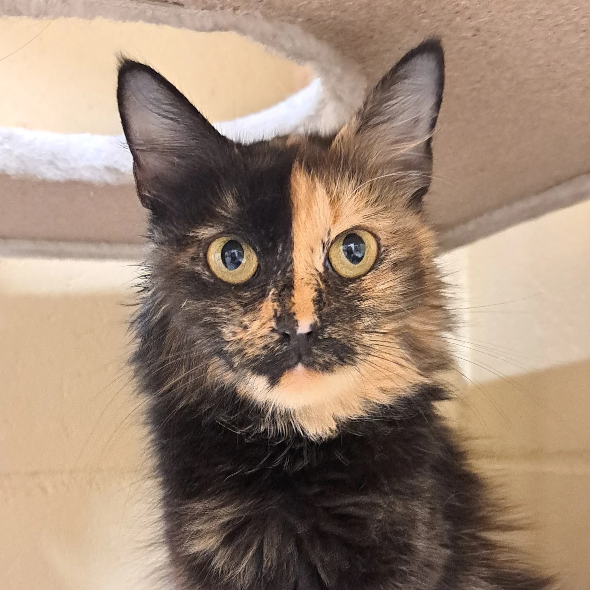 Melina on kaunis ja erilise kasukamustriga kassipreili, kes sattus meie hoole alla koos oma poegadega. Esialgu hoiab ta end natuke tagasi, kuid temas on palju uudishimu ning ta jälgib tähelepanelikult kõike enda ümber. Kui talle anda veidi aega ja läheneda rahulikult, tuleb välja tema soe ja paimaias pool – Melina oskab tõeliselt hinnata õrna tähelepanu ja vaikseid koosolemise hetki.