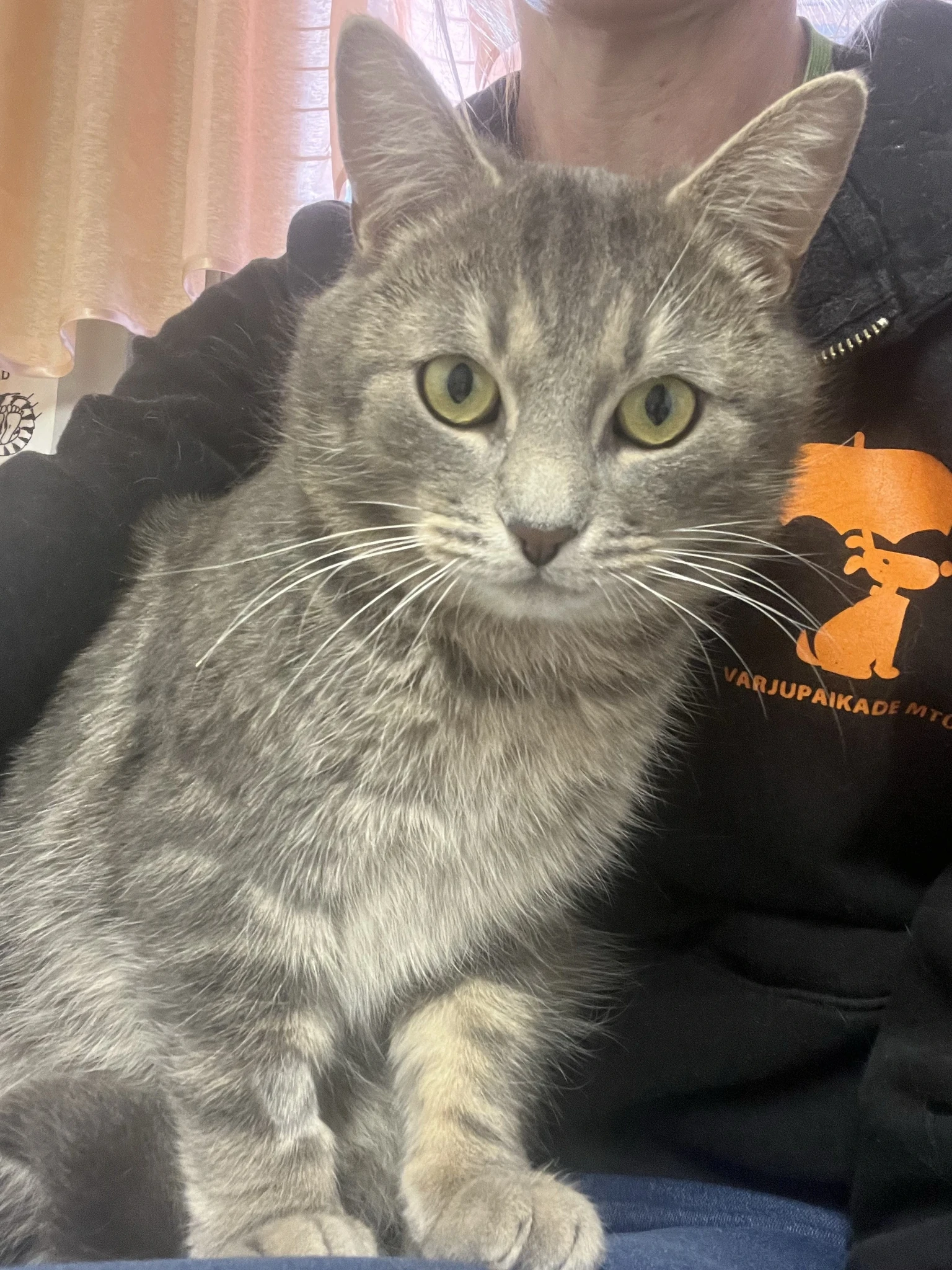 Jaanuari alguses helistati ja teatati, et ühe majapidamise pööningule oli üks kartlik kass kolinud. Kuna kass kiusas ka perekassi ja ei kavatsenudki sealt majapidamisest lahkuda, siis see muutis pere murelikuks. Vilksamisi teda seal pööningul nähti, kuid pilti kahjuks teha ei õnnestunud. Nii teavitasime valda, kes andis loa kass vastu võtta. Peremees püüdis ise püüriga kassi kinni ja tõi meie juurde varjupaika.