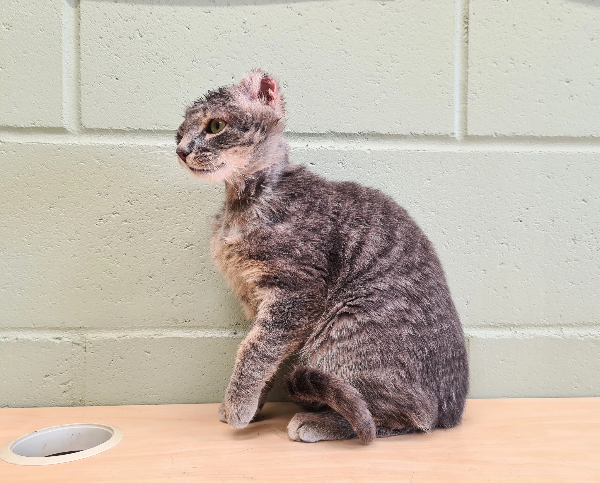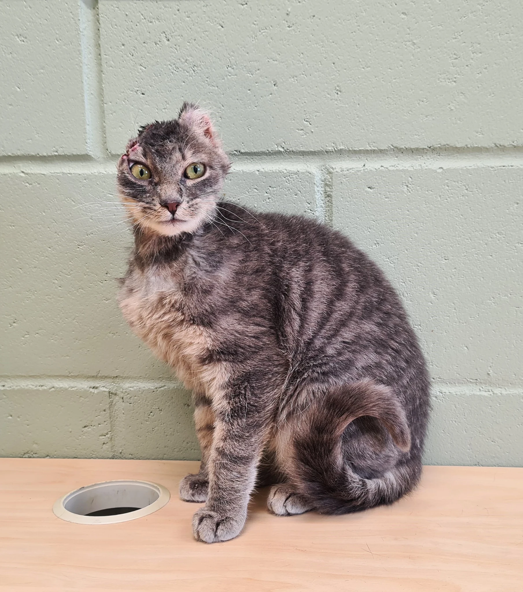 Kass saabus varjupaiga hoole alla tõsise peatraumaga. Hetkel on ta veterinaari järelvalve all ja saab vajalikku ravi.
